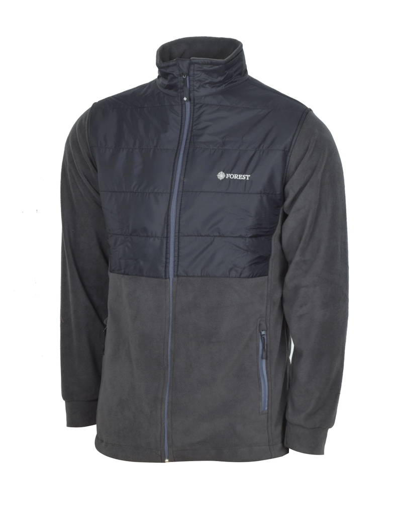 Campera micropolar con tela impermeable en los hombros y en la parte superior de la espalda.